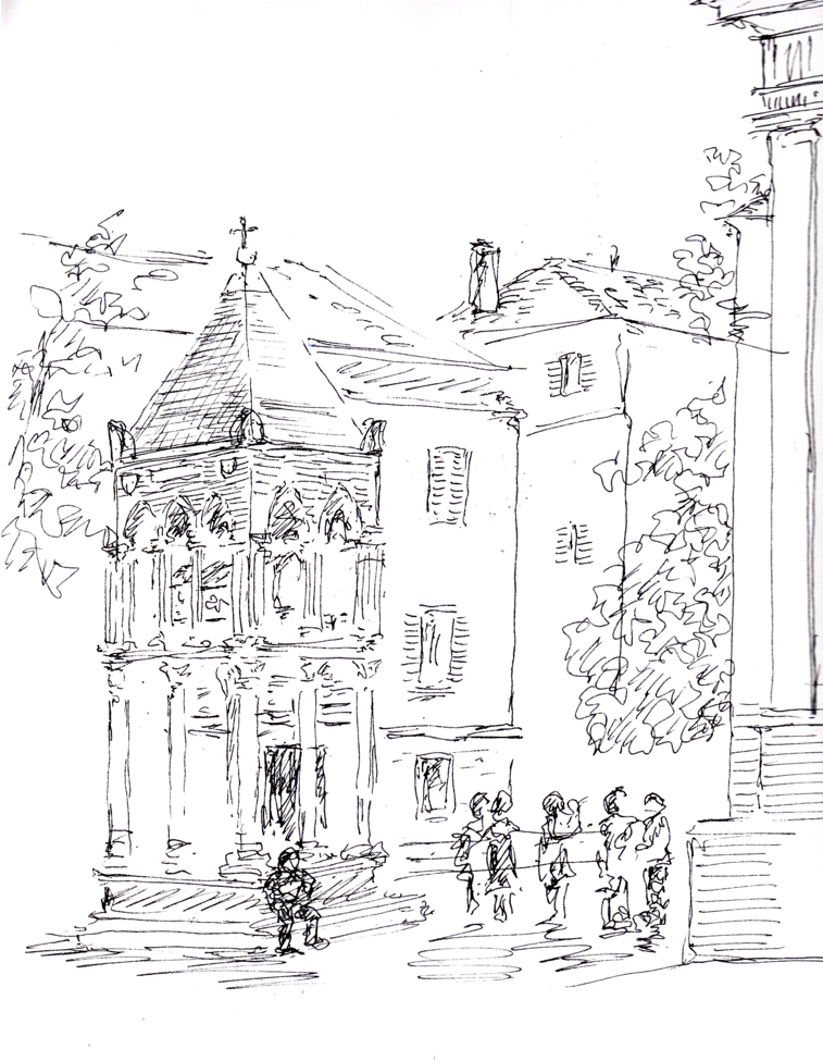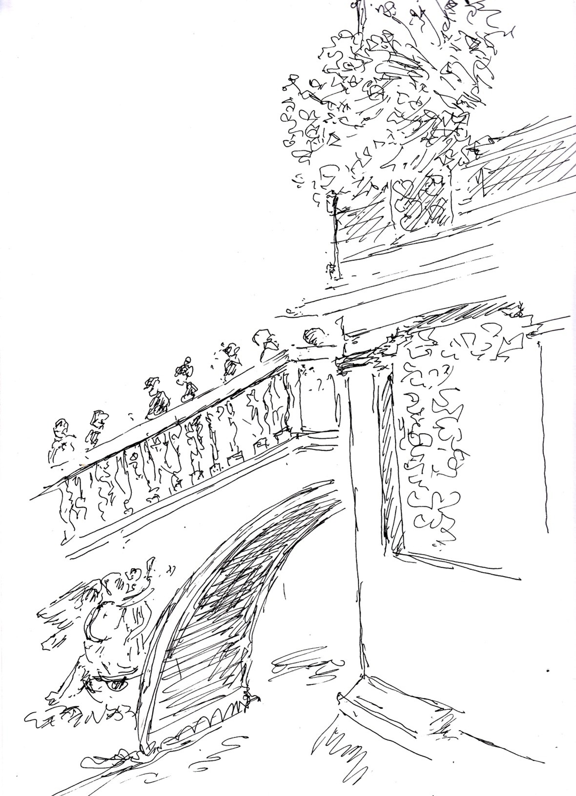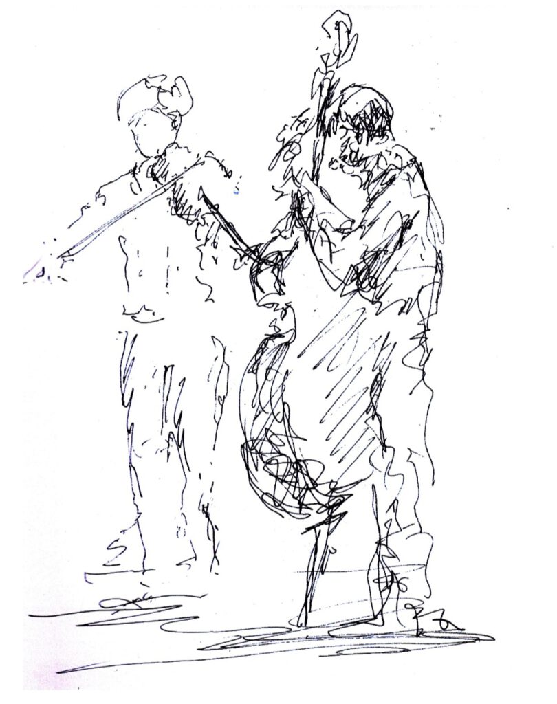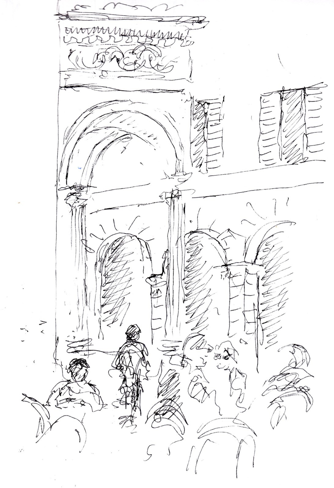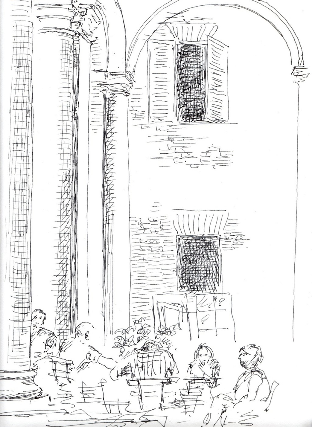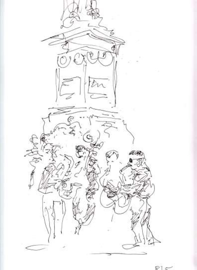 Auf den ersten Blick mag man sich fragen, welche Beziehung die einzelnen Figuren zueinander eingehen. Es gibt zwar zwei Gruppen, aber auch zwei einzeln stehende Personen, ein Gesamtzusammenhang lässt sich so zunächst nicht herstellen.